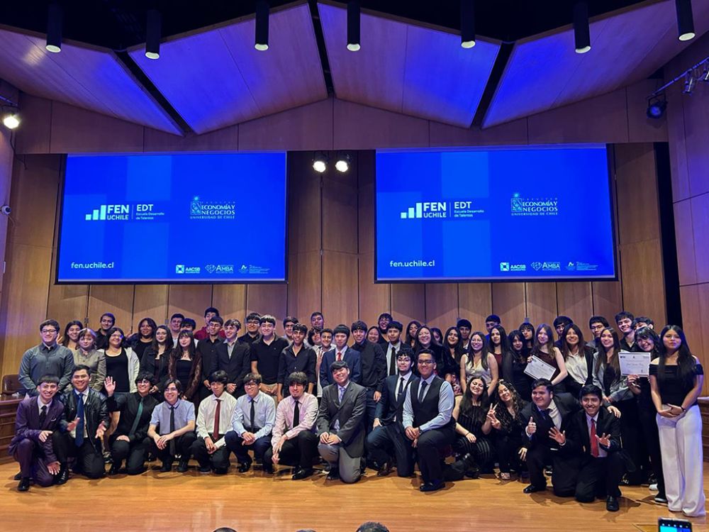 La mañana del jueves 11 de diciembre, la Generación 2024 de la Escuela de Desarrollo de Talentos (EDT) de la Facultad de Economía y Negocios de la Universidad de Chile vivió su ceremonia de graduación en el Aula Magna de la FEN. El encuentro contó con la presencia de la Rectora de la Universidad de Chile, Rosa Devés; del vicedecano de la FEN, Enrique Manzur; del secretario ejecutivo de Educación Media Técnico Profesional del Ministerio de Educación, Cristian Lincovil; además de autoridades municipales, representantes de liceos y de las instituciones aliadas de la EDT.
